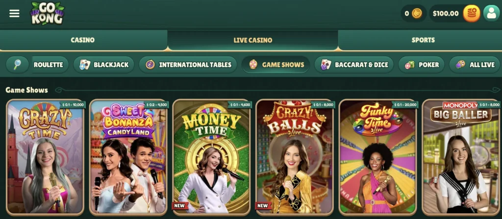 Many of Go Kong live games are classic and improved roulette from different reputable providers. Gold Saloon Roulette, Fortune Roulette and Mega Roulette are some well-designed games that offer true value. There are over 100 distinct varieties, each connecting you to a real gaming room following launch.